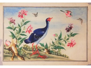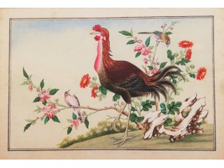 Dipinto originale eseguito su carta di Giappone molto sottile. Il soggetto è racchiuso entro una doppia linea di inquadramento nera. All'interno, fantastica rappresentazione policroma di uccelli, con fiori e magnifiche farafalle miniaturizzate. L'opera è...