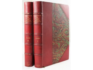 Legature moderne in mezza pelle rossa a salvaguardia delle brossure originali. Autore e titolo impressi in oro ai dorsi, sguardie in carta marmorizzata ed Ex Libris "Josephi Andreae De Robillard De Beaurepaire Rothomagensis" al contropiatto anteriore di entrambe i volumi. I vol: ritratto...